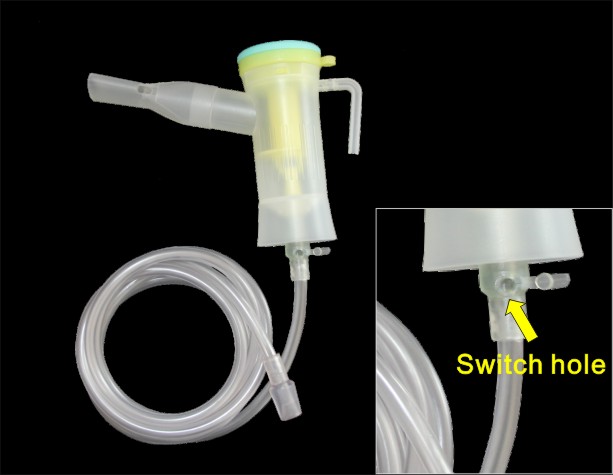 Open the switch of tubing connector,finger presses switch hole,there are aerosol output and inhale;release finger and no aerosol output then exhale.
